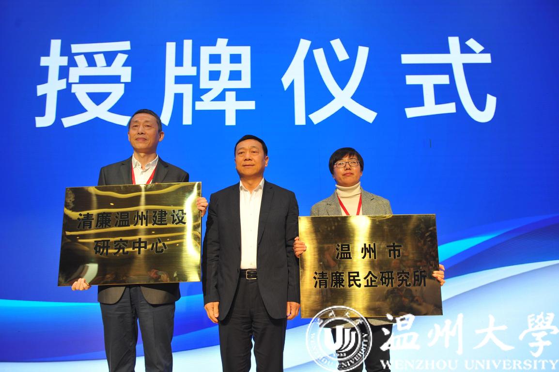 会上,清廉温州建设研究中心、清廉民企研究所正式授牌落户香蕉视频 。清廉温州建设研究中心和清廉民企研究所是由中共温州市纪委、温州市监察委员会与香蕉视频 共同建立的研究机构。研究中心将研究探索“理论研究-决策咨询-廉洁教育”“三位一体”模式,致力于温州市反腐倡廉理论研究、决策咨询、廉洁教育和人才培养;清廉民企研究所则将以新时代“两个健康”先行区创建目标,围绕清廉民企建设、打造企业清廉文化、构建亲清政商关系开展理论研究、实践调研。两研究院所将通过与相关民企、行业协会、商会等常态化的联盟合作,搭建起纪检监察机关与民企沟通的桥梁,使清廉思想、清廉制度、清廉规则、清廉纪律、清廉文化融入民营企业发展之中,助力温州建设成民企清廉建设的高水平示范区。