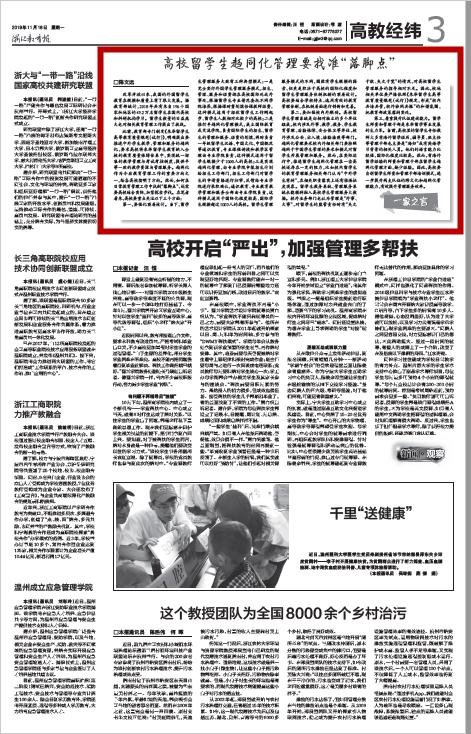 编者按:近日,《浙江教育报》刊出香蕉视频 陈文远老师撰写的文章《高校留学生趋同化管理要找准“落脚点”》。现全文转载,以飨读者。