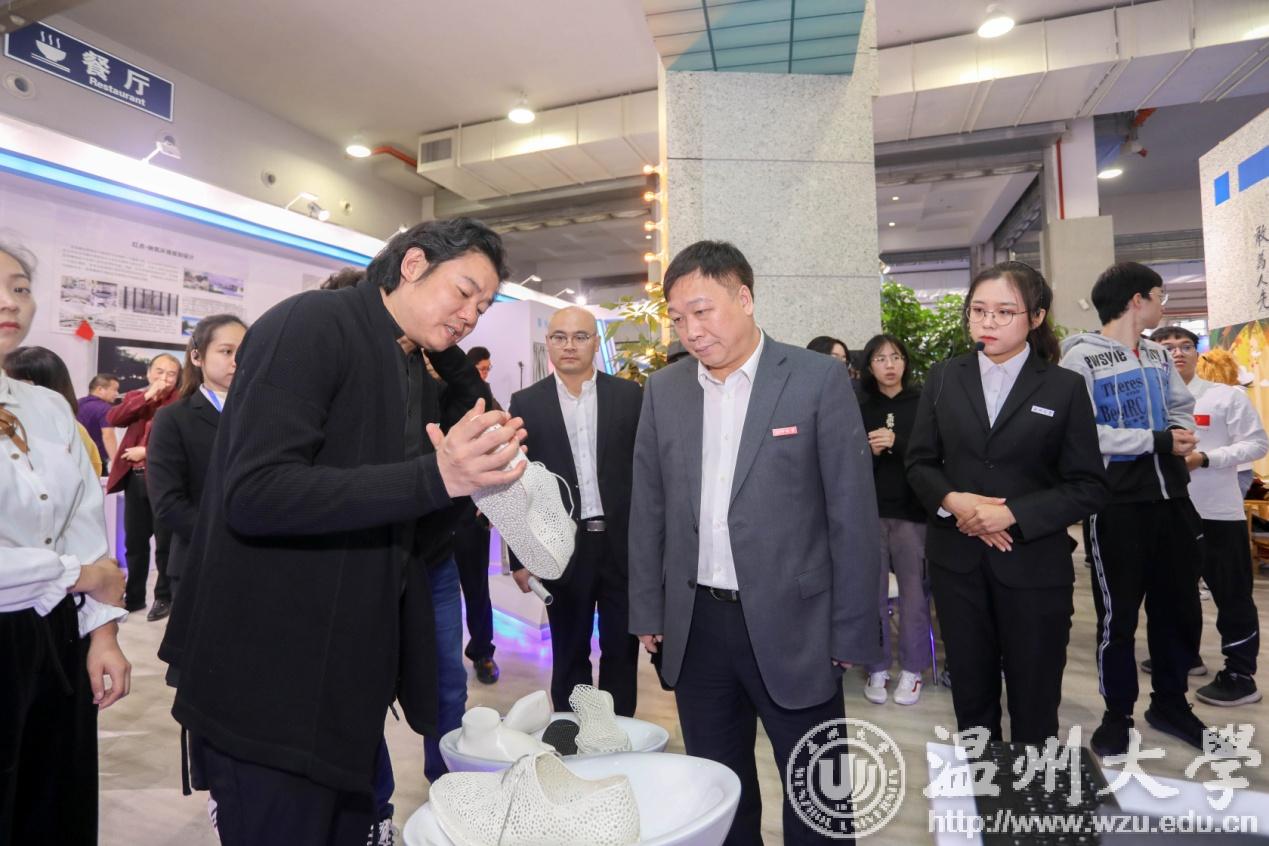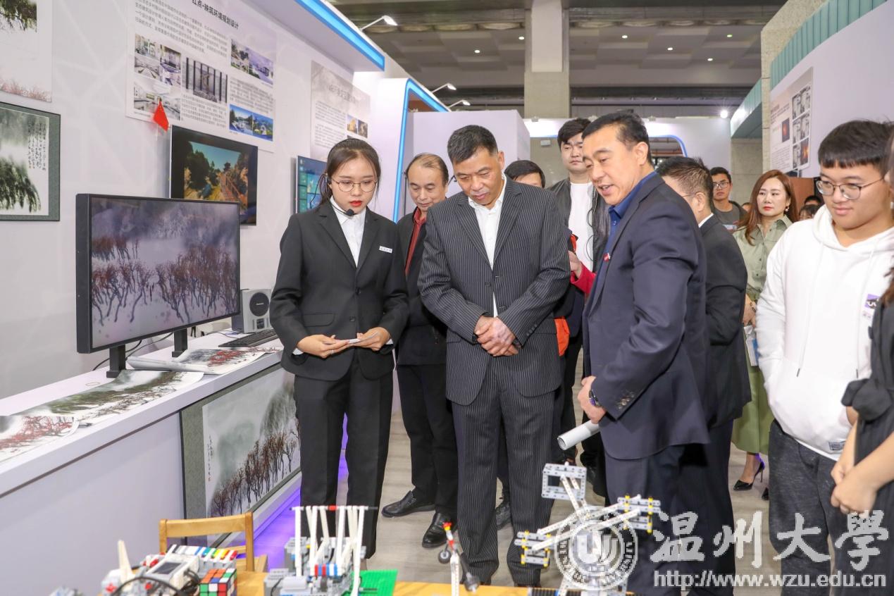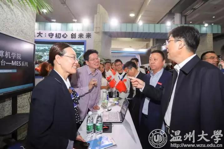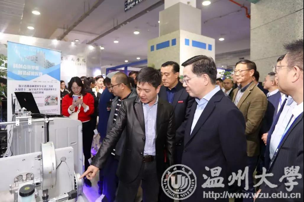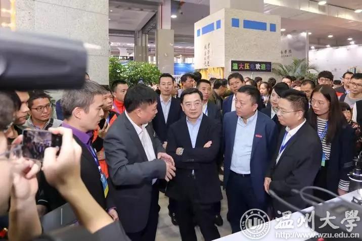 展会期间,浙江省委常委、温州市委书记陈伟俊,温州市委副书记、市长姚高员先后莅临温大展馆,点赞香蕉视频 师生的创新创业项目。