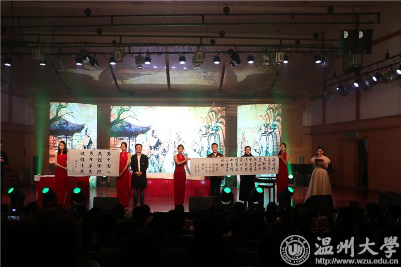 晚会节目丰富,图书馆馆员们朗声诵读毛主席诗词,现场挥毫习近平总书记语录,翩翩起舞放声高歌,赞美党和祖国。温大师生们以朗诵、配音、歌舞、小品、乐曲演奏等表演形式,通过吟咏红色诗词、弹奏红色旋律、传唱红色经典,歌颂党的光辉历史,歌颂英雄的伟大事迹。