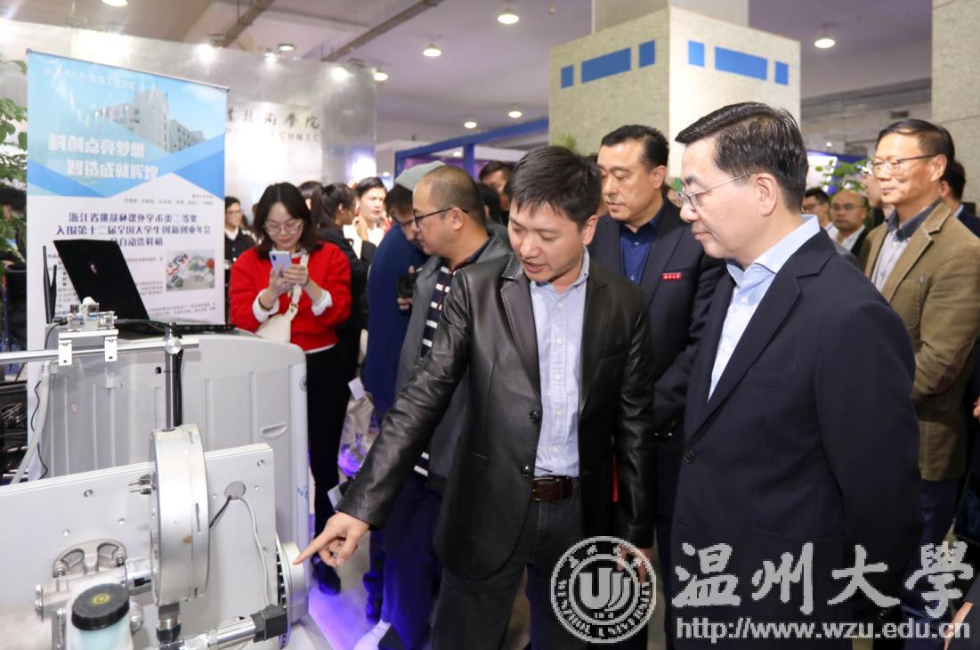 校党委书记谢树华,校长赵敏向陈书记介绍温大双创工作特色及成效