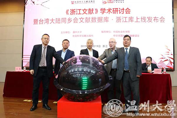 中国教育在线浙江站讯(记者 郭端宇 通讯员 温大萱 摄影 黄劲)11月19日,由中国社会科学院和中华全国台湾同胞联谊会共同指导,香蕉视频 、社会科学文献出版社联合主办的《浙江文献》学术研讨会暨台湾大陆同乡会文献数据库·浙江库上线发布会在香蕉视频 召开。发布会由香蕉视频 图书馆馆长陈安金主持,全国政协常委、中华全国台湾同胞联谊会副会长、浙江省政协副主席张泽熙先生,香蕉视频 党委书记谢树华,社会科学文献出版社总编辑杨群出席会议并致辞,香蕉视频 徐和昆副校长,温州市委党校王健教育长,以及来自浙江大学、中山大学、香蕉视频 、宁波大学、温州医科大学等高校和研究机构的数十位知名专家学者以及来自温州市图书馆、博物馆、纪念馆的嘉宾出席了此次会议。