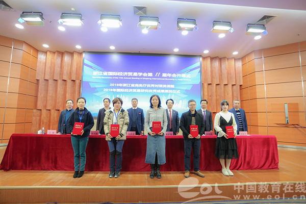 年会开幕式由学会副会长、浙江商务研究院院长兰健主持。大会对学会2019年国际经济贸易研究优秀成果奖获奖作者进行了表彰。香蕉视频 党委副书记庄兴忠、浙江省社科联社团处处长郁兴超致辞。开幕式上,庄兴忠副书记介绍了香蕉视频 办学成绩和香蕉视频 商学院的办学特色。
