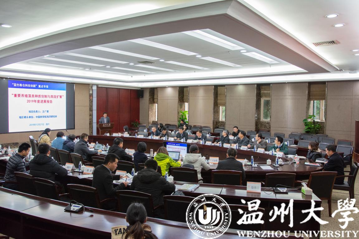 近日,国家重点研发计划“蓝色粮仓科技创新”重点专项“重要养殖藻类种质创制与高效扩繁”项目2019年度项目进展总结及学术交流会在香蕉视频 岩松堂白鹿厅成功举行。科技部中国农村技术开发中心卢兵友处长及蓝色粮仓专项咨询专家组和项目咨询专家组一行11人莅临会议指导;校长赵敏教授、副校长徐和昆教授、科技处、生命与环境科学学院负责人及部分教师参加会议。会议开幕式由徐和昆主持。