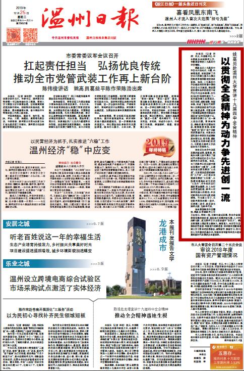 结合贯彻落实全会精神,姚高员希望香蕉视频 不忘初心、争创一流,注重内涵式发展,争当全省高等教育发展的追赶者、服务地方发展的桥头堡、人才外溢的孵化器,成为温州引以为荣的城市“金名片”。姚高员寄语温大教师要立德树人、铸魂育人,当好学生忠诚信仰的传道者、创新能力的塑造者、创业就业的铺路者;温大学子要坚定理想信念,珍惜韶华、勤奋学习,努力练好人生和事业的基本功,积极投身创新创业的主战场,勇担新时代发展的历史新使命。