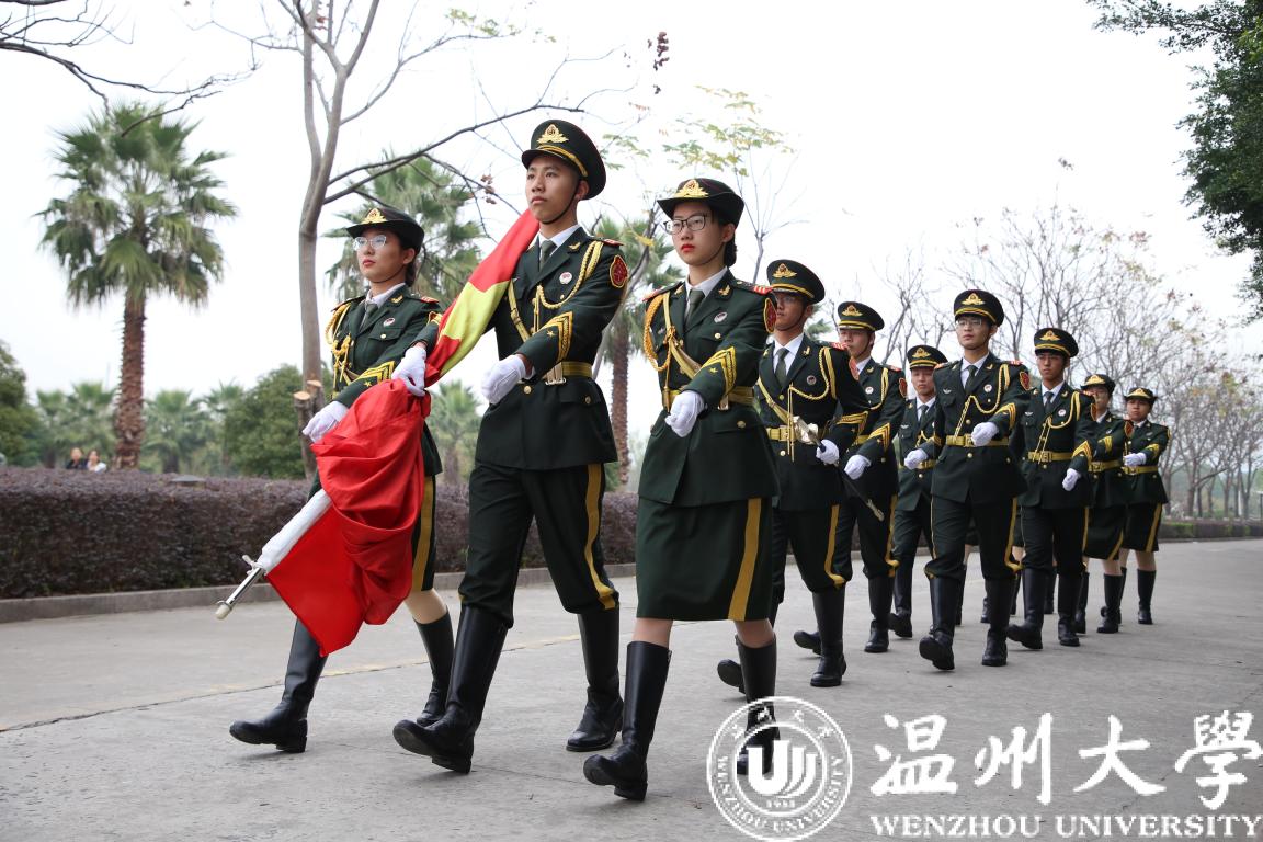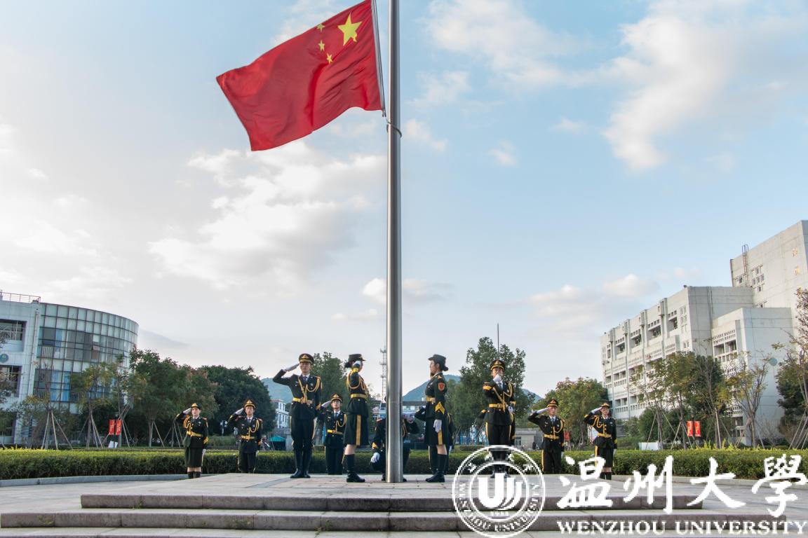 国旗广场落成揭牌在庄严的升国旗仪式中开始,校国旗护卫队队员英姿飒爽、步列整齐,五星红旗伴随着雄壮的国歌声高高升起并飘扬在温大校园上空,在场嘉宾、师生行庄严的注目礼。
