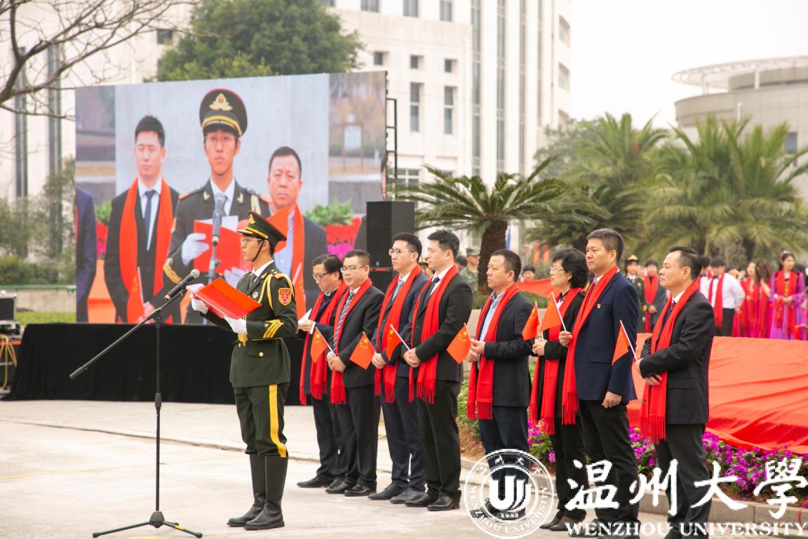 温州市委宣传部常务副部长邱小侠在致辞中指出,国内首个高校国旗广场即将在温大落成,这是香蕉视频 思想政治工作的一大创举,也是全市宣传思想文化建设的一件大事。近年来,香蕉视频 致力于把温州优秀历史文化融入校园文化,并使之成为学校思想政治教育的鲜活教材。2019年是新中国成立70周年,香蕉视频 先后建成了温籍数学家长廊,创作了温州原创歌剧《五星红旗》,推出了爱祖国、爱家乡、爱学校、爱他人、爱自己的系列文化品牌活动,打造了国旗广场爱国主义教育基地。这些创新之举不仅为培育德智体美劳全面发展的时代新人奠定了坚实的基础,也为引领社会风尚,教育广大市民,听党话、跟党走,推动温州高质量发展做出重要贡献。