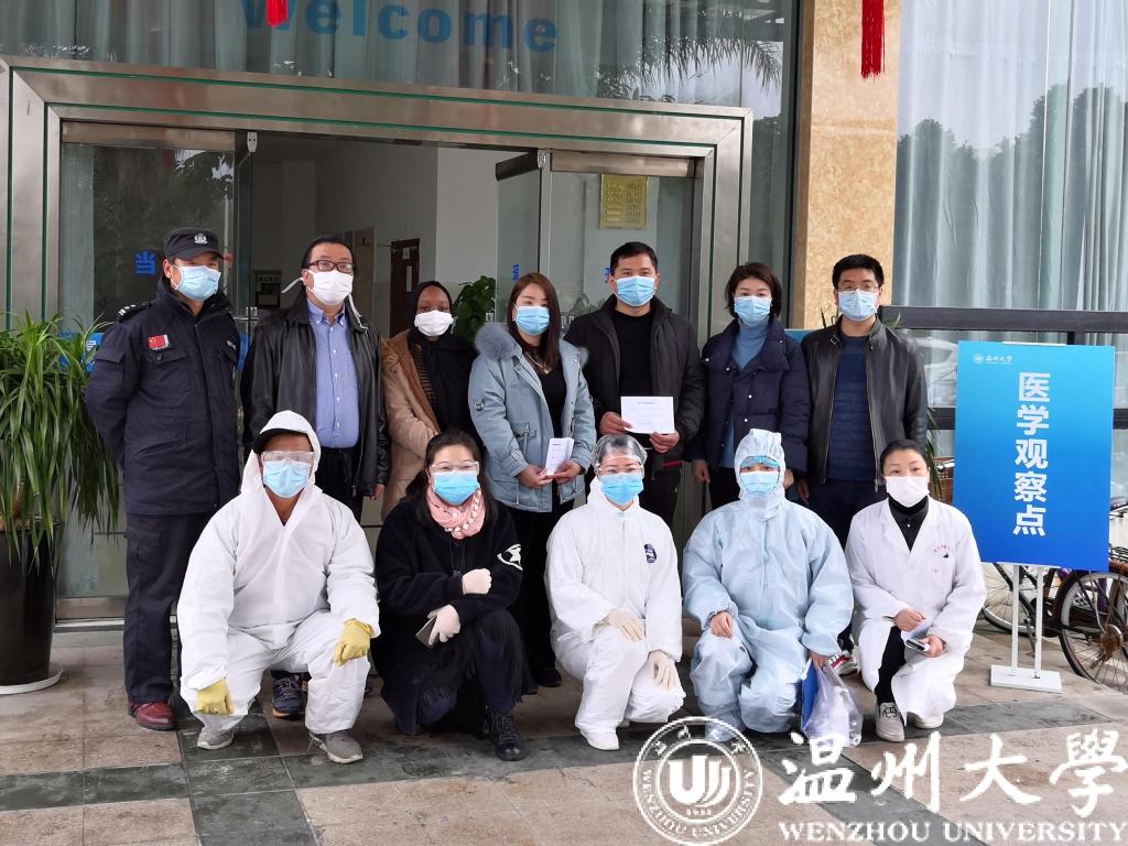 首批结束医学观察的师生是在1月30日下午至晚上,分别从省外返回学校的,根据工作预案,当天第一时间,校医务室顾秀杰和林杭医生就对他们进行身体检查、测体温、询问记录接触史,并在告知隔离观察期间应注意的事项后,将他们收住在专家楼,成为首批接受医学观察的师生。医学观察期间,校医务室值班人员每天2次进入隔离区查房,给他们测量体温、询问身体状况。经过连续14天的监测,4位师生体温正常,均未发现身体异常情况。