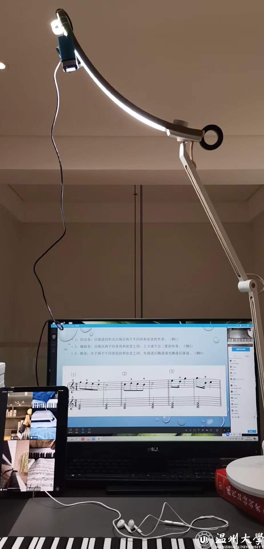 拉网线、搭设备、台灯拿来当支架……不少有着丰富教学经验教授,为了保证线上教学效果,纷纷化身“主播”,想方设法丰富课堂内容,活跃课堂氛围。王佑镁教授更是在《信息技术教学设计》课程中加入疫情时期线上教学的课程思政教育,将课程内容与疫情相关的各种新闻素材案例相结合,通过生动的课堂讲述,让同学们由衷感受到国家制度的优势。