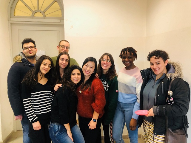 疫情前,张珉璐老师与意大利学生在一起