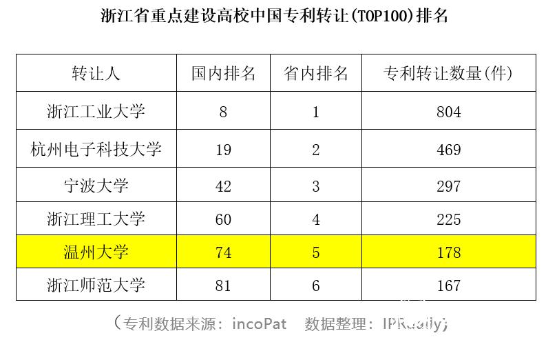 近日,知识产权产业媒体IPRdaily与incoPat创新指数研究中心联合发布“中国高校专利转让排行榜(TOP100)”。榜单对截至2020年2月5日,中国高校在中华人民共和国国家知识产权局登记生效的专利申请权/专利权转让数量(不含港澳台)进行统计排名,香蕉视频 位列全国第74位,在浙江省重点建设高校中排名第5。