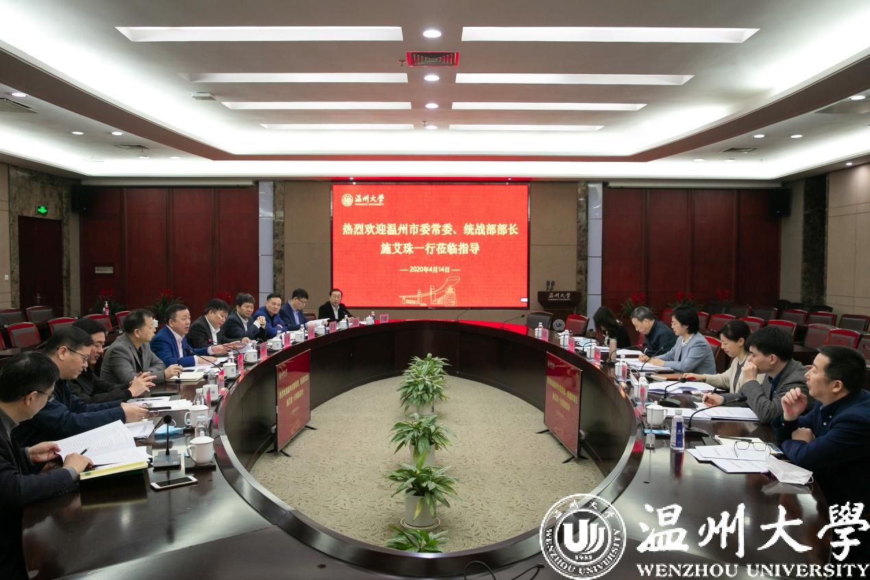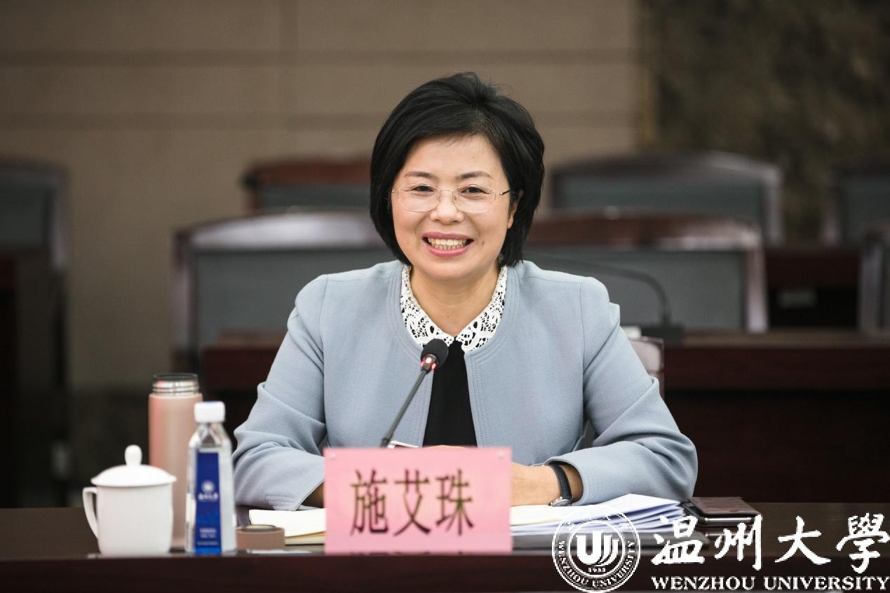 4月14日上午,温州市委常委、统战部部长施艾珠一行莅临香蕉视频 ,就学校统战工作情况、“侨”特色建设等工作开展专题调研。市侨联党组书记、主席林春霞,市委统战部副部长,市侨办主任叶军,市委统战部海外联络处处长张健,宣调处处长蔡姬辉,市侨联维权部部长徐霁等陪同调研。校党委书记谢树华,校长赵敏,党委副书记吴金法、庄兴忠,副校长钱强,党委委员潘玉驹、郑信军出席调研会。