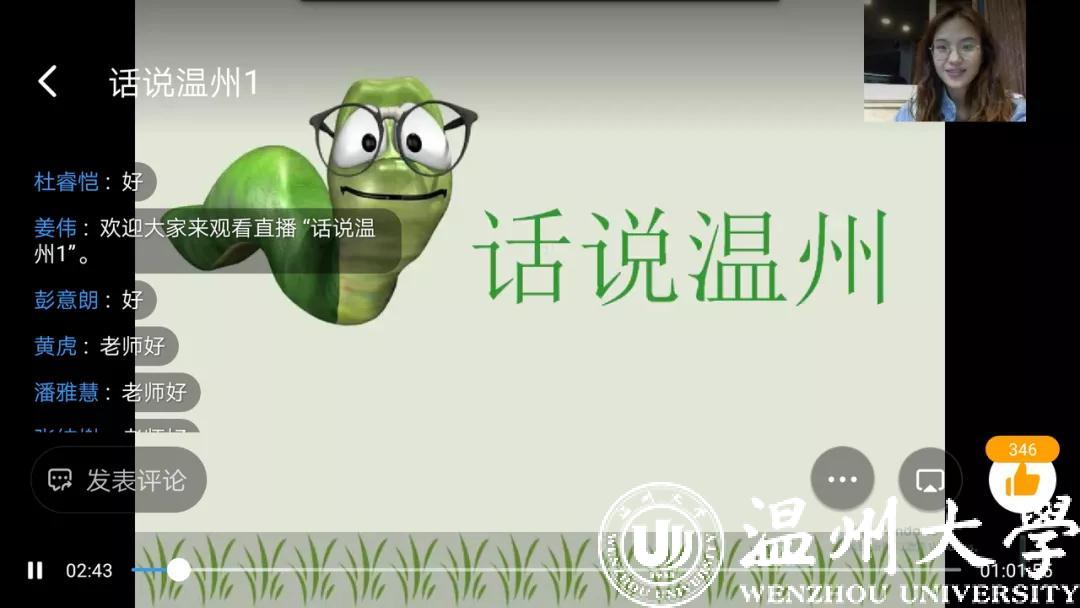 这故乡的味道,第一香,是风景。伴随着温州话版 “温州欢迎你”动听的歌声,美丽温州的画面缓缓呈现在孩子们的面前。通过云端网课的方式,孩子们好像在经历一场奇幻旅行,感受到了楠溪江、雁荡山大气豪迈,也体会到了南麂岛的小巧精致。网络,让孩子们即使身处异国他乡,也能将温州的青山绿水、大街小巷尽收眼底。
