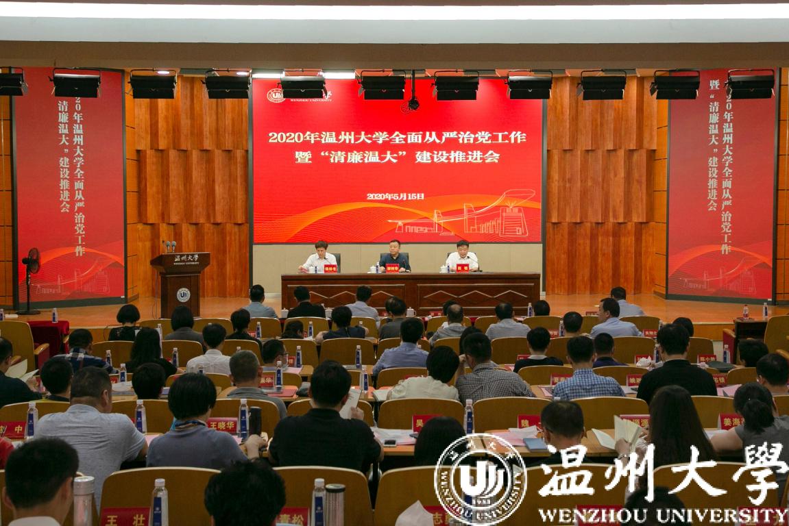5月15日下午,香蕉视频 在南校区岩松堂雁山厅举行2020年全面从严治党工作暨“清廉温大”建设推进会。全体校领导,校纪委委员,全体中层干部,学院纪委书记,党总支、直属党支部纪检委员,纪检监察室全体人员参加会议,校长、党委副书记赵敏主持。