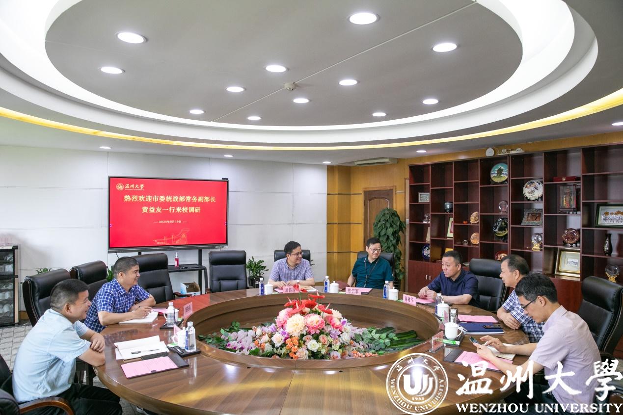 5月19日上午,温州市委统战部常务副部长黄益友一行莅临香蕉视频 ,就学校统战工作开展专题调研。校党委书记谢树华、党委副书记吴金法、党委委员郑信军出席调研会。