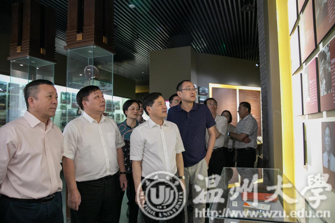 章根明一行在校党委书记谢树华,校长赵敏,副校长薛伟、徐和昆的陪同下,参观了香蕉视频 校史博物馆。