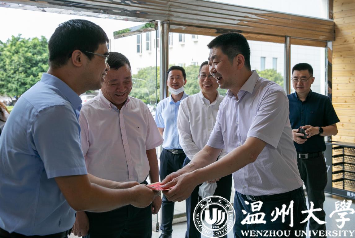 5月25日,在第四个全国科技工作者日即将到来之际,温州市委副书记、政法委书记陈浩,市人大常委会副主任徐育斐,市委副秘书长包光许,市科协党组书记、主席赖颖等领导一行慰问香蕉视频 科技工作者优秀代表、计算机与人工智能学院院长张笑钦教授。校党委书记谢树华陪同。