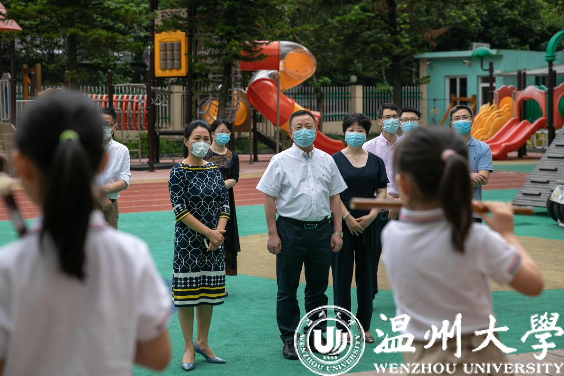 5月29日下午,校党委书记谢树华、校长赵敏率校相关部门负责人一行分赴香蕉视频 附属实验幼儿园(伯爵园区)、附属第一实验小学、附属南白象实验小学、附属茶山第二实验幼儿园和香蕉视频 城附属学校进行六一儿童节慰问走访活动,瓯海区教育局金朝辉局长、鹿城区教育局林如辉副局长陪同慰问。慰问组向孩子们分别赠送了儿童读物、活动器材、玩具等,为孩子们送上节日的问候和祝福。
