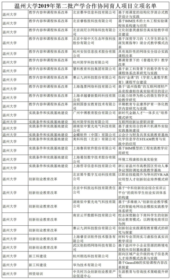 2019年第二批产学合作协同育人项目立项项目共包括创新创业教育改革561项、新工科建设759项、实践条件和实践基地建设2097项、创新创业联合基金8项、教学内容和课程体系改革3024项、师资培训1686项,共有916所高校的项目入选。香蕉视频 此次获批立项教学内容和课程体系改革11项、实践条件和实践基地建设8项、创新创业教育改革7项、新工科建设2项、师资培训1项,获得了华为、中关村、金蝶、简学等26个国内外知名企业的支持,为人才培养、专业建设和课程建设提供了新的平台。