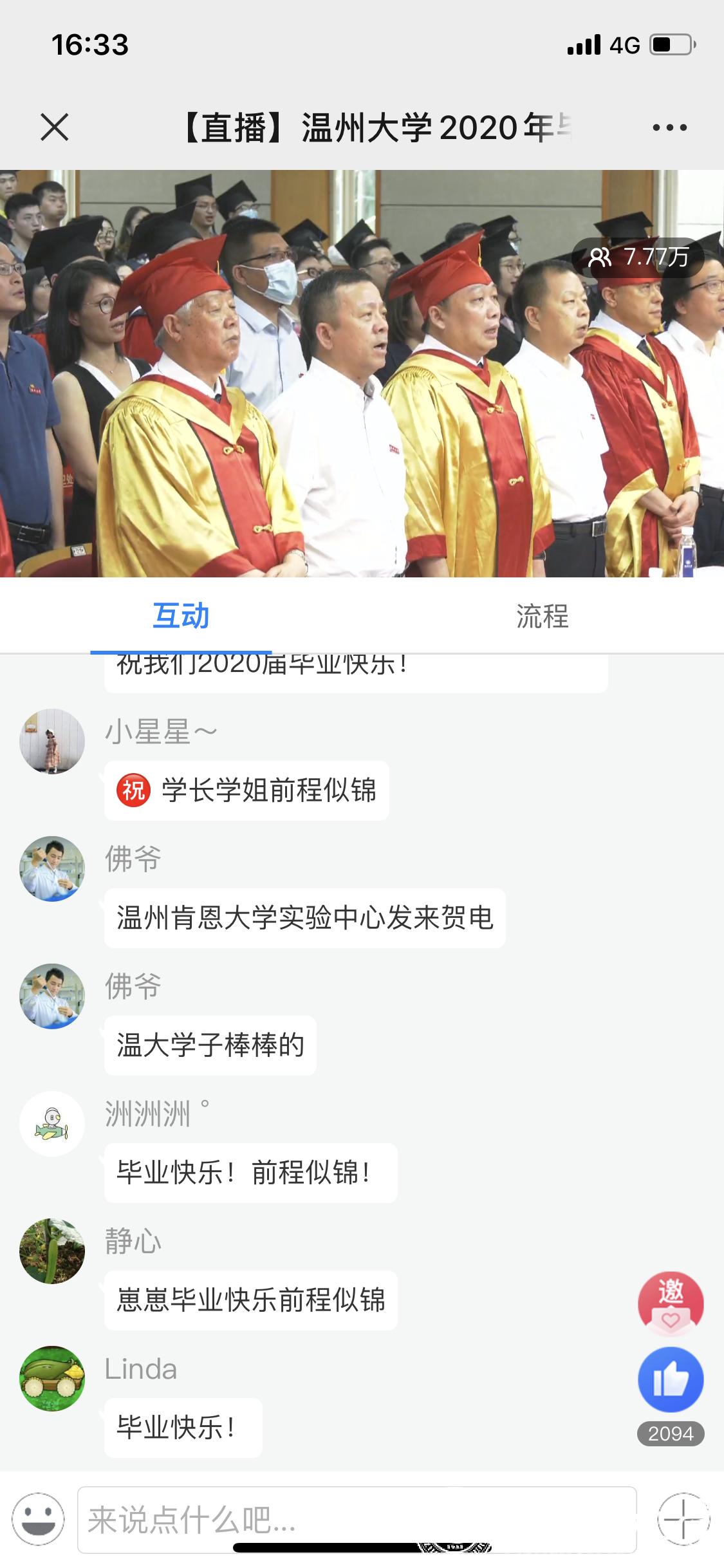 “东海水,雁荡山,我温大精神,浩浩宕宕……”师生们齐唱校歌,忆往昔朝气蓬勃,望明日繁花似锦。此次毕业典礼还同步进行了网络直播,截止发稿,近8万人次在线观看参与了毕业典礼。