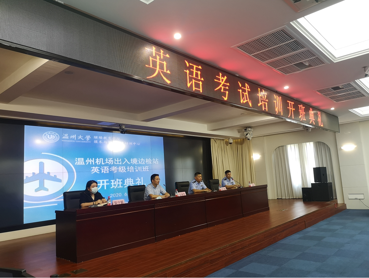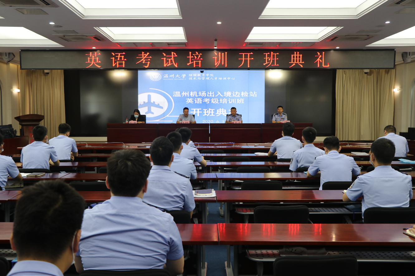 温州机场出入境边检站因其国际化的工作性质,提出“全员学外语大提升计划”,由香蕉视频 继续教育学院培训部联合香蕉视频 海外教育服务中心为其量身定制为期三个月的全国英语等级考试培训。昨天参与培训的46位学员正式开班了!