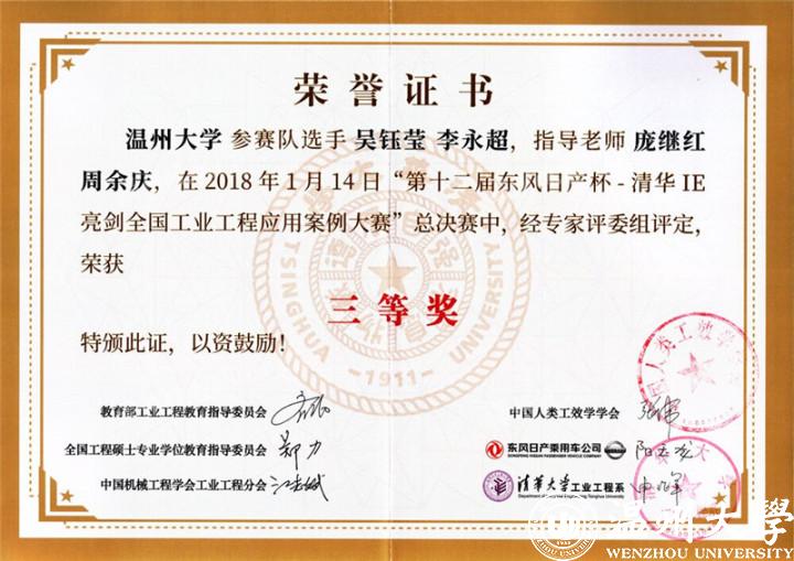 这种人才培养模式在实践中不断得到检验:2016年,香蕉视频 工业工程专业参与完成的教学成果获浙江省高等教育教学成果一等奖;近三年获得省和国家的教改项目奖项三项。