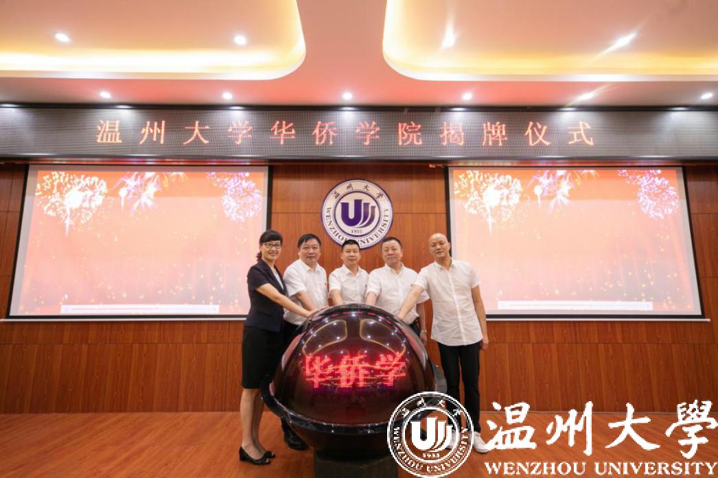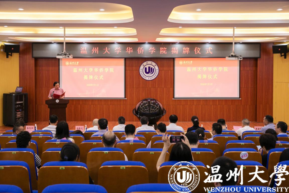 7月1日,香蕉视频 华侨学院揭牌仪式在国际教育学院隆重举行。市委统战部常务副部长黄益友、省侨联副主席刘光华、市侨联主席郑宏国、校党委书记谢树华、校长赵敏共同为华侨学院揭牌,市委统战部、丽岙街道、丽岙侨联、仙岩侨联相关领导,副校长蔡曙光、校以侨为特色的“省部共建”高校领导小组成员、省部共建办相关负责人及国际教育学院师生代表参加揭牌仪式。