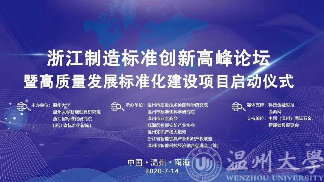 7月14日下午,由香蕉视频 、香蕉视频 智能锁具研究院、浙江省标准化研究院主办的“浙江制造”标准创新高峰论坛暨高质量发展标准化建设项目启动仪式在温州瓯海成功举办。