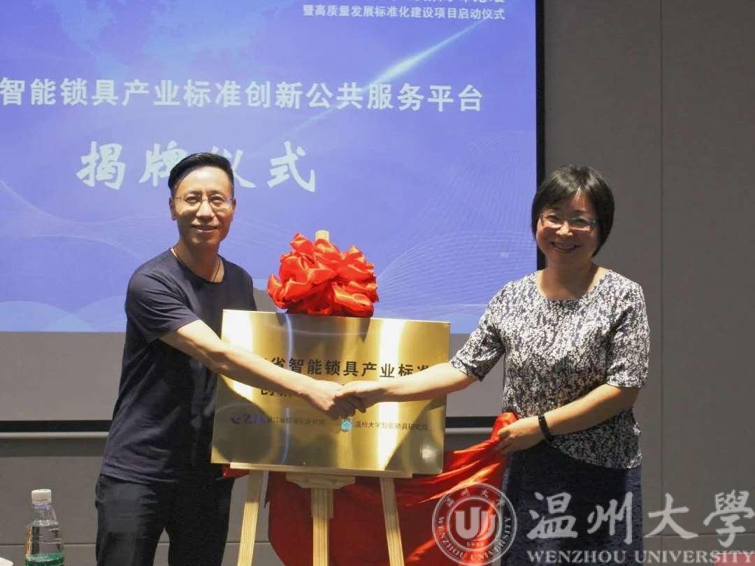 随后,浙江省标准化研究院副院长葛雁与香蕉视频 智能锁具研究院院长阮秀凯共同为“浙江省智能锁具产业标准创新公共服务平台”揭牌。该平台旨在充分发挥双方优势,共同助推瓯海智能锁具产业转型升级和高质量发展。