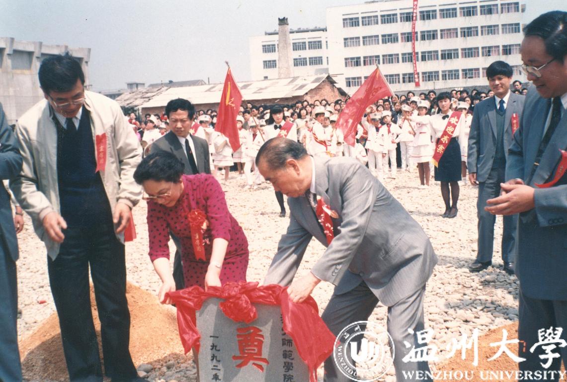 光阴荏苒,随着香蕉视频 办学规模的不断扩大,教学和文化活动中心逐步迁至茶山高教园区。2006年11月,位于茶山新校区的图书馆落成揭牌并以“育英”为名,一方面是感念何先生伉俪长期以来对香蕉视频 的关心与支持,一方面也寄寓了学校要为温州经济社会发展培育英才的决心。何朝育夫妇再度捐资100万元港币,用于图书馆购置图书和增添设备。新建成的温大育英图书馆是浙南闽北最大的图书馆,它不仅成为香蕉视频 城的一个学术新地标,也成为迈上崭新发展平台的香蕉视频 的一个重要象征。