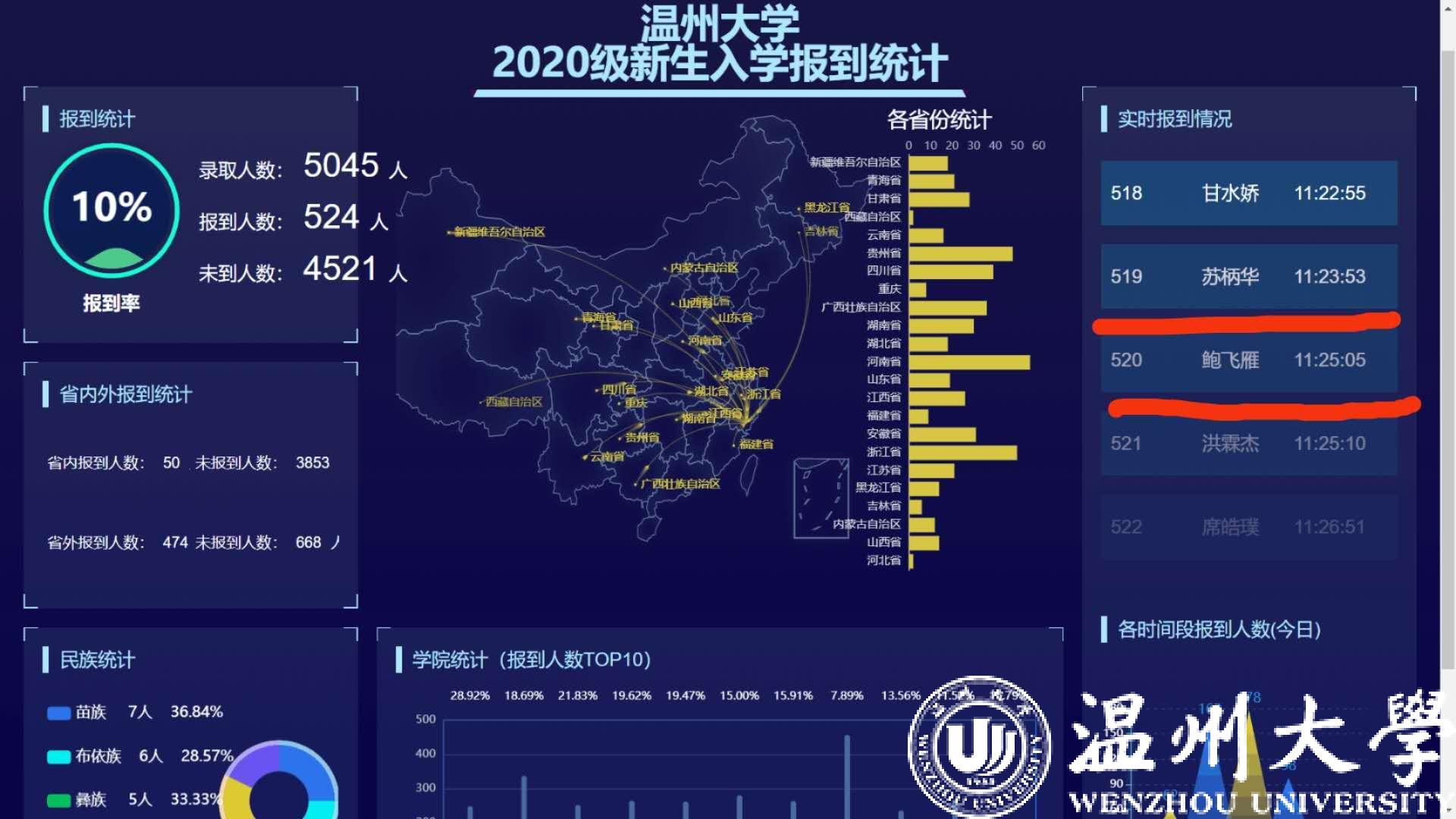 温州网对香蕉视频 迎新工作进行了现场直播,5.4万人次在线观看。据悉,香蕉视频 2020级新生人数10207人,其中研究生1303人,校本部本科生4076人,专科生863人,第二学士学位学生107人,国际学生100人,继续教育学院882人,瓯江学院2876人。按照学校安排,本科新生始业教育为9月26日-27日,9月28日正式上课;研究生新生始业教育为9月26-30日,10月9日正式上课。