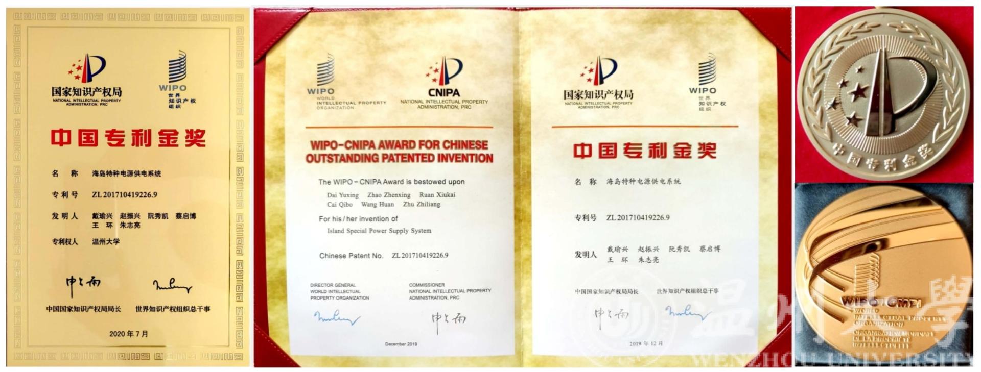 以香蕉视频 为专利权人、戴瑜兴教授为第一发明人的发明专利“海岛特种电源供电系统”凭借其国际领先的技术水平、显著的经济与社会效益,获第二十一届中国专利金奖。该奖项是香蕉视频 首次获得中国专利金奖,实现了香蕉视频 中国专利金奖零的突破,这也是温州市首次获得该项殊荣。