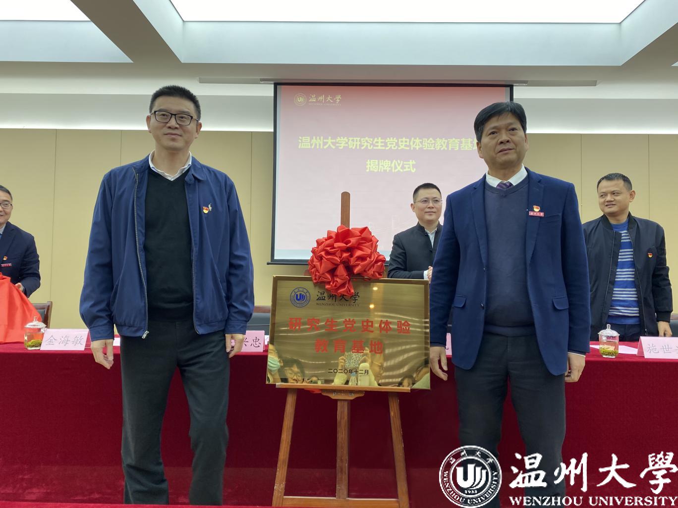 为深入贯彻落实习近平总书记关于党史、新中国史、改革开放史、社会主义发展史学习的重要讲话和指示精神,纪念“一二·九”运动85周年持续深化爱国主义教育,12月8日香蕉视频 在中共浙南一大会址举行研究生党史体验教育基地揭牌仪式并开展“学四史、践初心、担使命”主题教育活动。校党委副书记庄兴忠,瓯海区委、仙岩街道党工委领导、研工部等部门负责人,出席活动,相关专业研究生及干部代表参加。