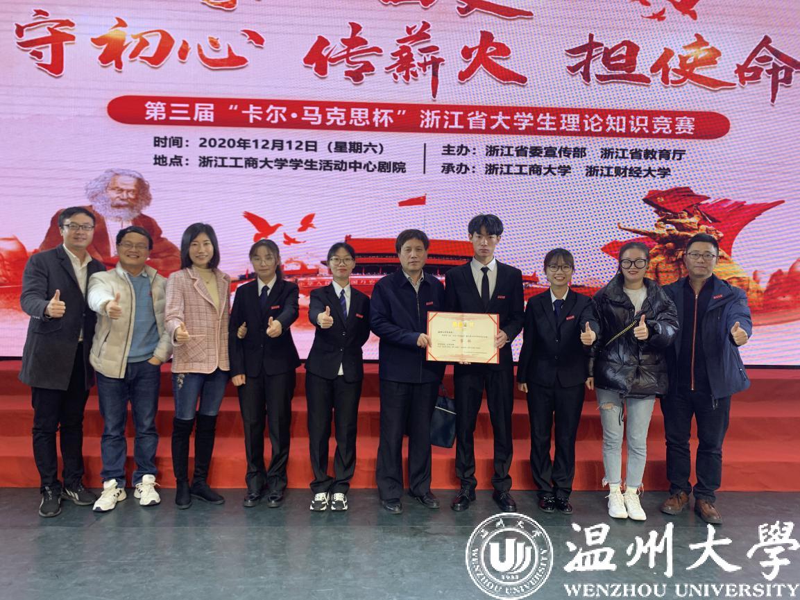 12月12日上午,由省委宣传部、省教育厅主办,浙江工商大学、浙江财经大学承办的第三届“卡尔·马克思杯”浙江省大学生理论知识竞赛圆满落幕,香蕉视频 代表队荣获一等奖和优秀组织奖,创历史最好成绩。这是香蕉视频 连续第三年进入决赛,连续两年获得优秀组织奖。香蕉视频 比赛答题率和答题质量表现突出,答题率接近100%,居全省首位,为全省入围决赛的10所本科高校之一。