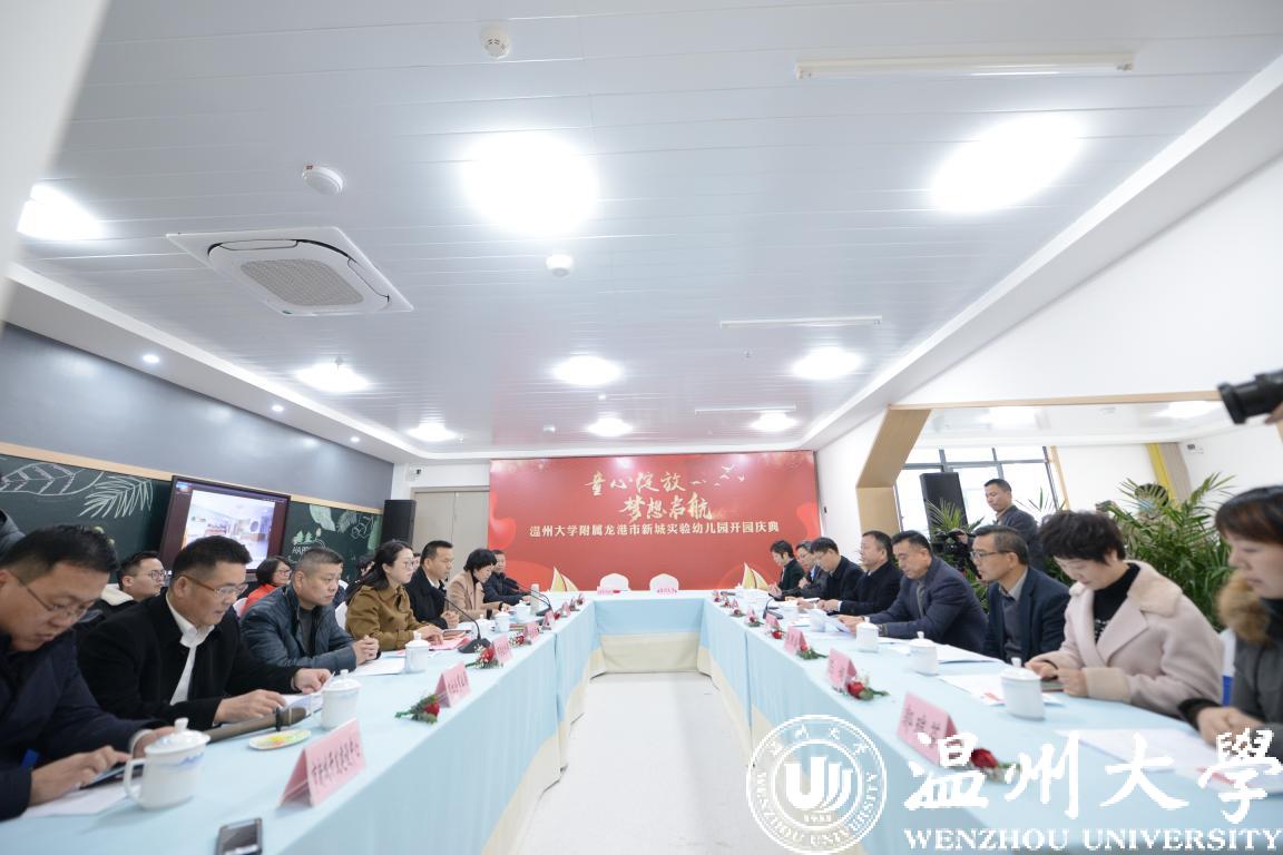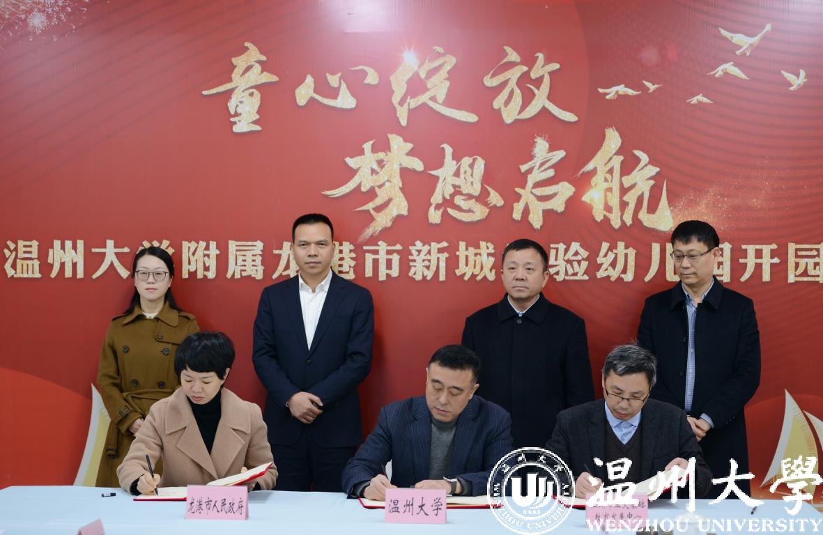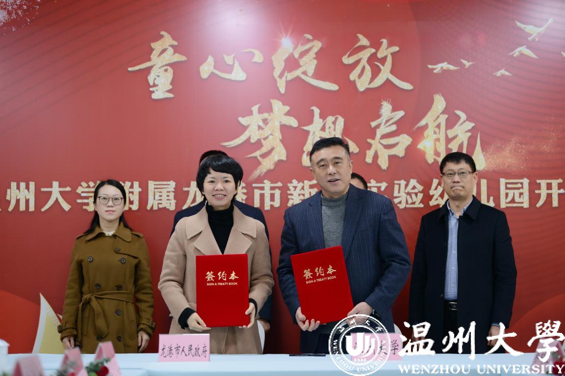 1月5日下午,香蕉视频 与龙港市人民政府创新战略合作签约暨香蕉视频 附属龙港市新城实验幼儿园开园仪式在龙港举行。香蕉视频 党委书记谢树华,副校长薛伟,龙港市委书记郑建忠,市委副书记、市长何宗静,市委常委、市政府办公室主任黄贤满等出席仪式,签约仪式由龙港市副市长阮晓琼主持。香蕉视频 地方合作处、温大基础教育发展中心、附属实验幼儿园等相关部门负责人参加仪式。
