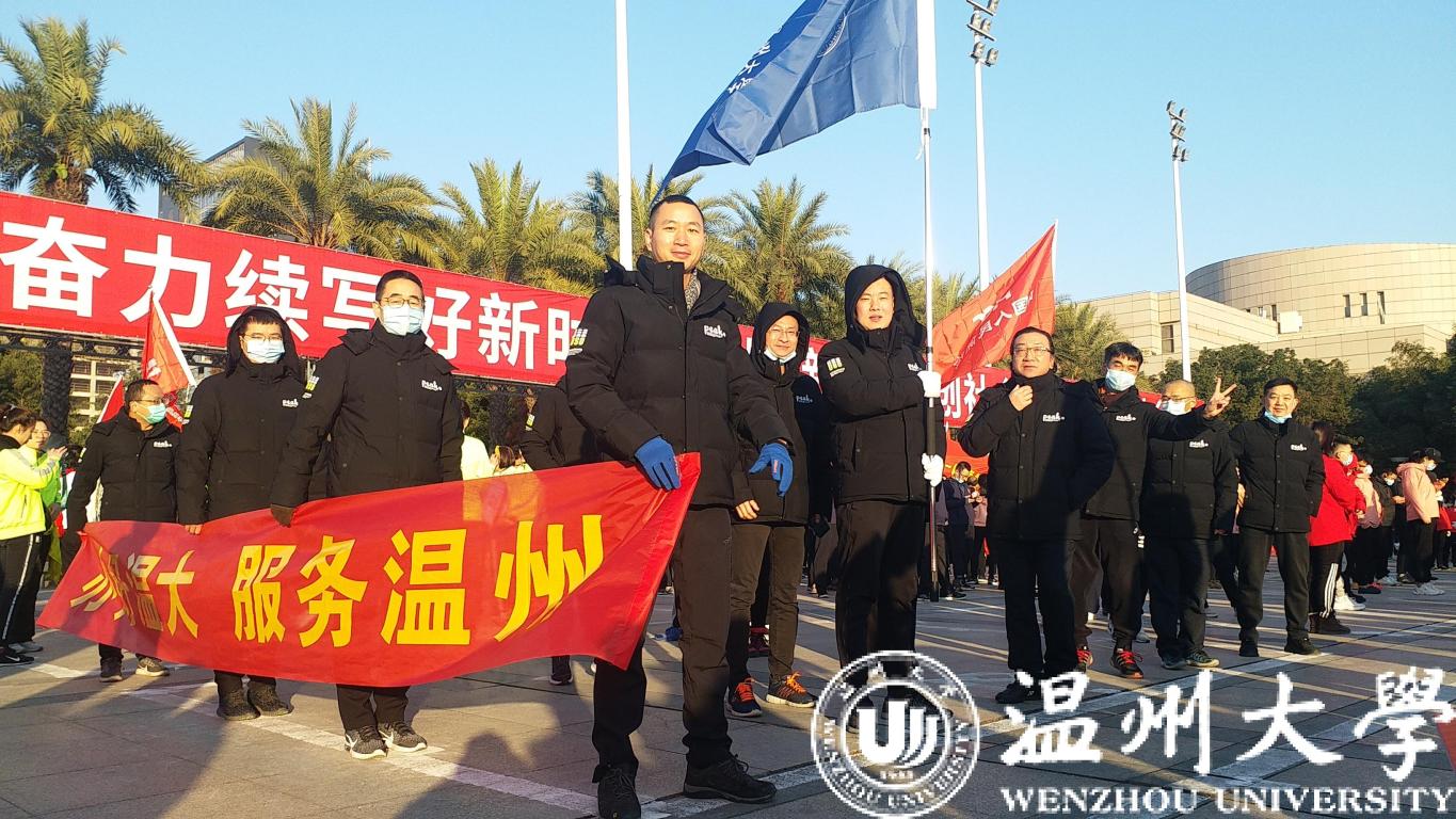 元旦清晨,温州世纪广场迎来了新年的第一缕阳光,温州市元旦升国旗仪式暨“中国金茂杯”健身跑举行。香蕉视频 20位教职工在副校长蔡曙光的带领下与全市近5000余人以健身跑的方式迎接新年的到来。