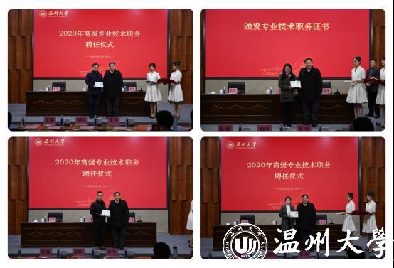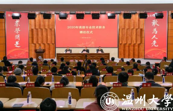 1月13日下午,香蕉视频 在南校区岩松堂雁山厅隆重举行2020年高级专业技术职务聘任仪式。校党委书记谢树华、校长赵敏出席聘任仪式,副校长薛伟主持。