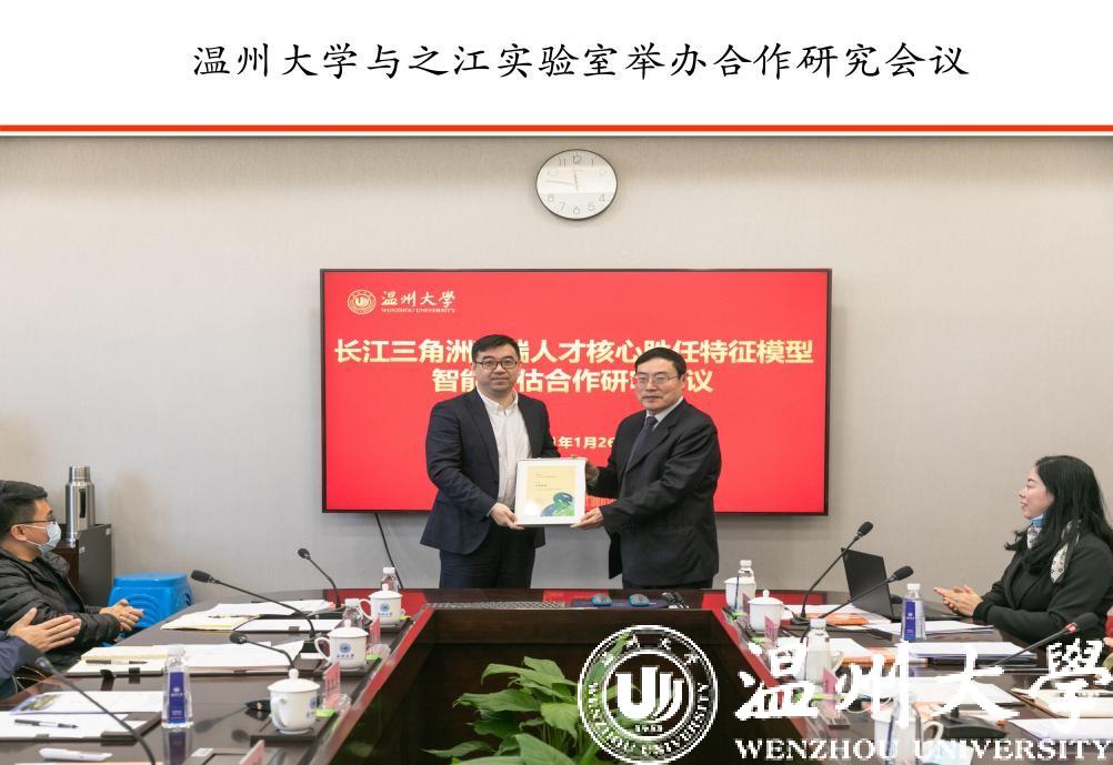 1月26日上午,之江实验室郑宇化副主任一行访问香蕉视频 ,就《长江三角洲高端人才核心胜任特征模型的智能评估》研究项目与时勘教授领导的温州模式发展研究院举行合作研究会议。校领导赵敏、唐闻捷出席会议。
