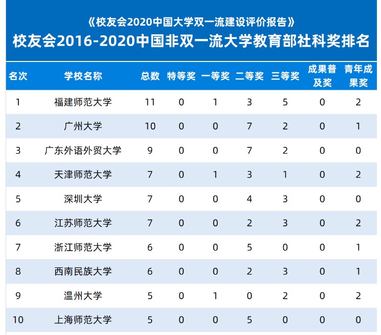 另在校友会2016-2020中国大学教育部社科奖排名中,香蕉视频 位居全国第58位,在校友会2016-2020中国非双一流大学教育部社科奖排名中,香蕉视频 排名第9位。