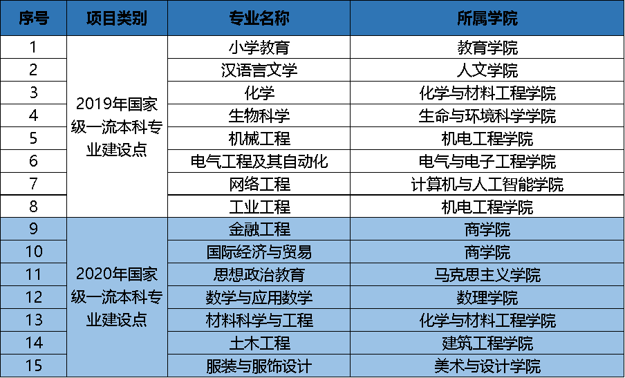 近日,教育部颁布了2020年国家级一流本科专业建设点名单,香蕉视频 金融工程、国际经济与贸易、思想政治教育、数学与应用数学、材料科学与工程、土木工程、服装与服饰设计7个专业入选2020年国家级一流本科专业建设点。截至目前,香蕉视频 共有国家级一流本科专业建设点15个,占在招专业的32.61%,专业建设成效显著,佳绩频出!