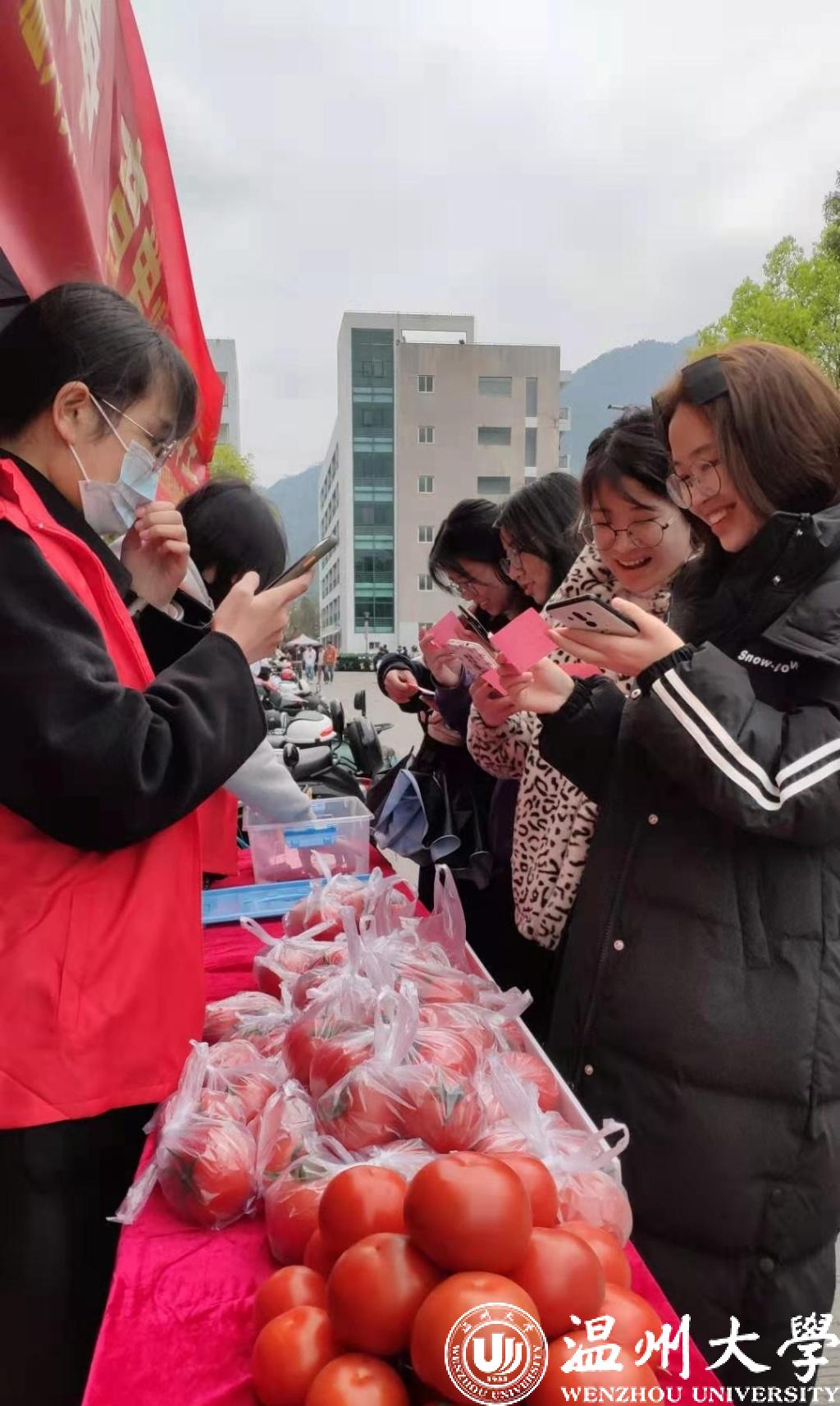 为了让此次爱心助农活动更有意义,党员志愿者们想出了“答题有礼”的点子,只要师生参与党史知识答题,就赠送1斤西红柿作为奖励,增添了活动的知识性和趣味性。“我觉得这次爱心助农活动特别有意义,爱温州就要帮温州。”参与活动的师生感慨道。学校收购的1700余斤西红柿不到1小时便被分发而空。