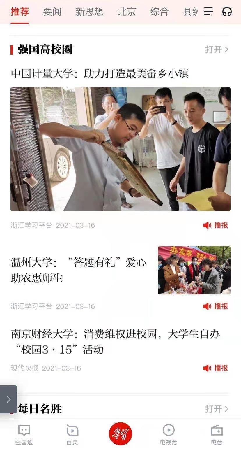 《学习强国》总平台香蕉视频《强国高校圈》推送