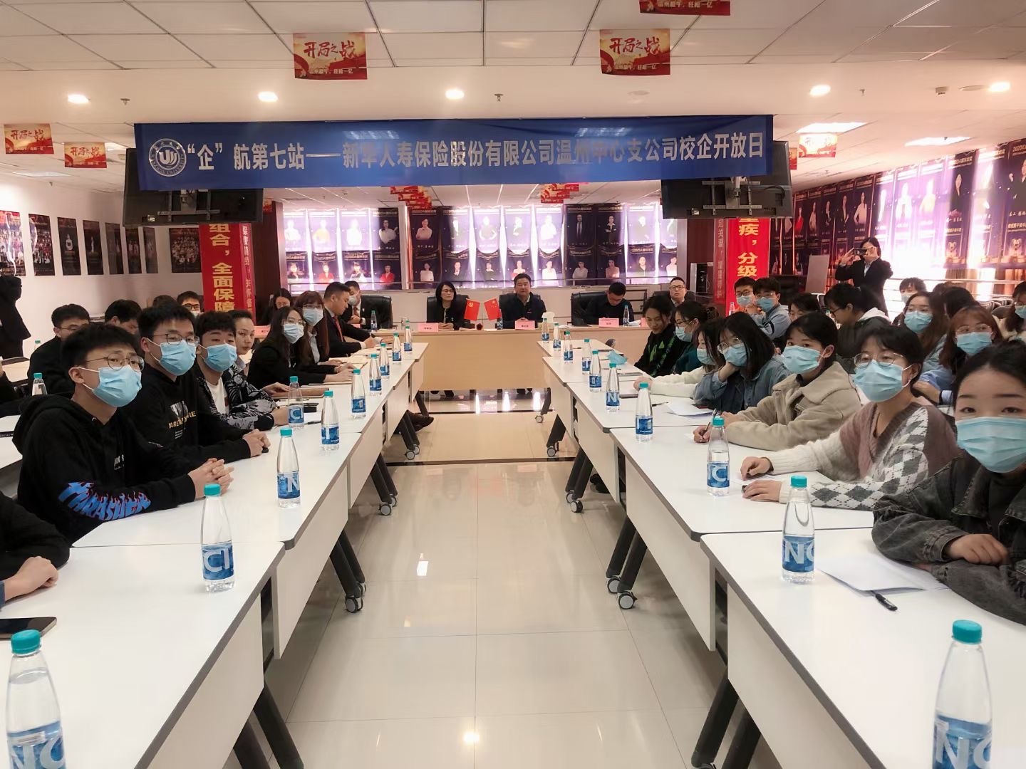 结合业务学党史是本次主题活动的特色。为深化校企合作,促进大学生就业,学习结束后,双方还共建了毕业生优质就业基地,并隆重举行授牌仪式。随后,在新华保险温州中支党支部的精心组织下,大学生们听取了公司HR朱秀薇总监的金融安全教育讲座,并与任职该公司的2018届毕业学长张仁军校友进行互动交流,最后在新华保险温州中支党支部书记陈菊妫的带领下参观了香蕉视频建设成果。