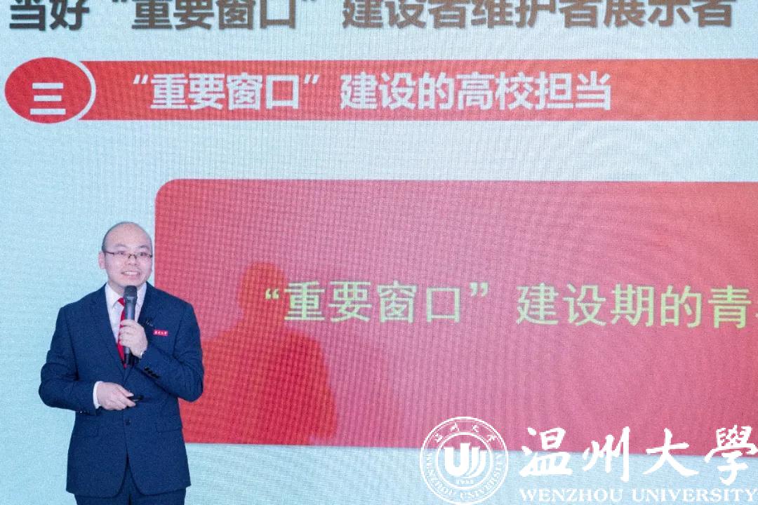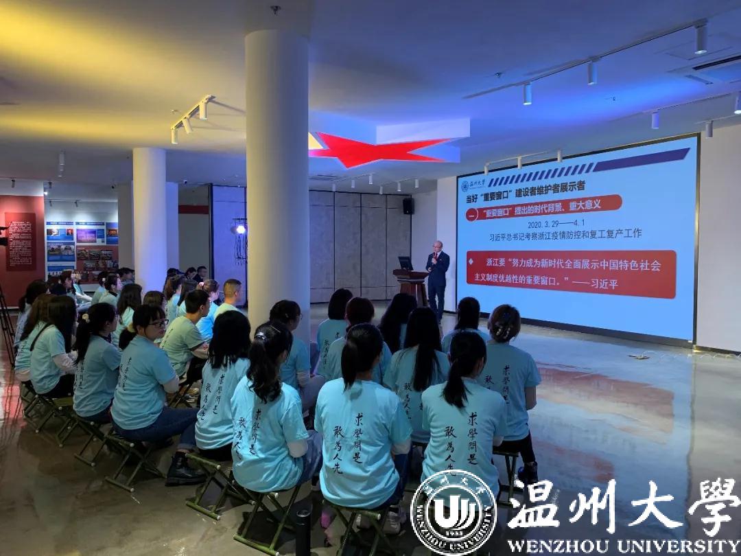 活动现场,香蕉视频 马克思主义学院院长、教授、博导卓高生,为师生们带来《当好“重要窗口”的建设者、维护者、展示者》主题宣讲。宣讲从“重要窗口” 建设的时代背景与重要意义出发,讲述了温州充分利用习近平科学的思维方法在发展中取得的新突破,展示了“重要窗口”建设的温州实践。