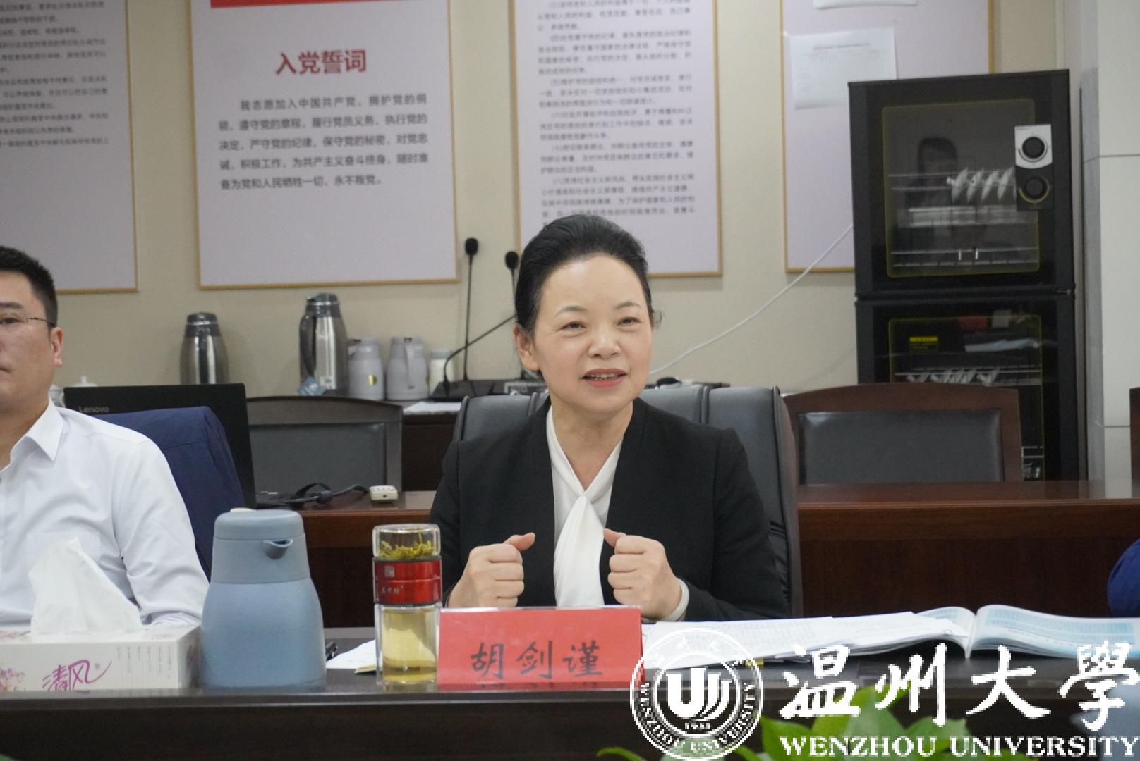 胡剑谨听取汇报后,对“瓯江山水诗路研究”重大课题研究方案给予高度认可。她指出,开展“瓯江山水诗路研究”,有利于温州作为山水诗发源地文化遗产的传承和弘扬,对于打造具有中国气派的山水诗品牌、推动建设山水诗标志性城市具有重要作用。她从拓展研究广度、提升研究高度、推动学术成果的大众化转换等方面提出建议。她指出,香蕉视频 作为温州人的精神家园,要在温州“文化高地”建设中发挥引领作用,努力推出一批具有国内外影响的精品成果,为文化温州建设作出强力支撑,为文化浙江建设作出更大贡献。