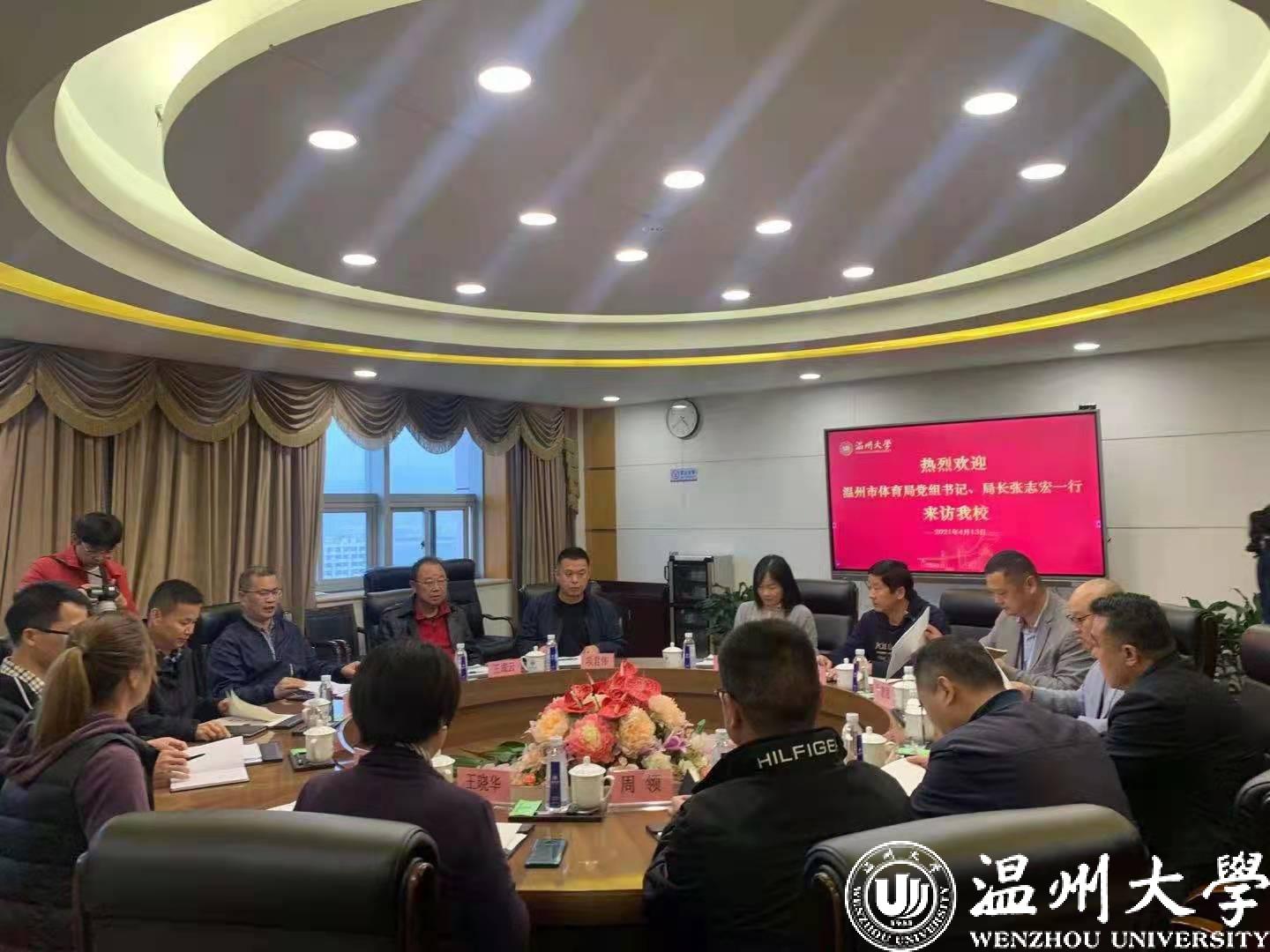 4月13日,温州市体育局党组书记、局长张志宏一行来访香蕉视频 推进龙舟学院筹建事宜。中国龙舟协会副主席、浙江省龙舟协会主席王成云,副校长薛伟出席会议。