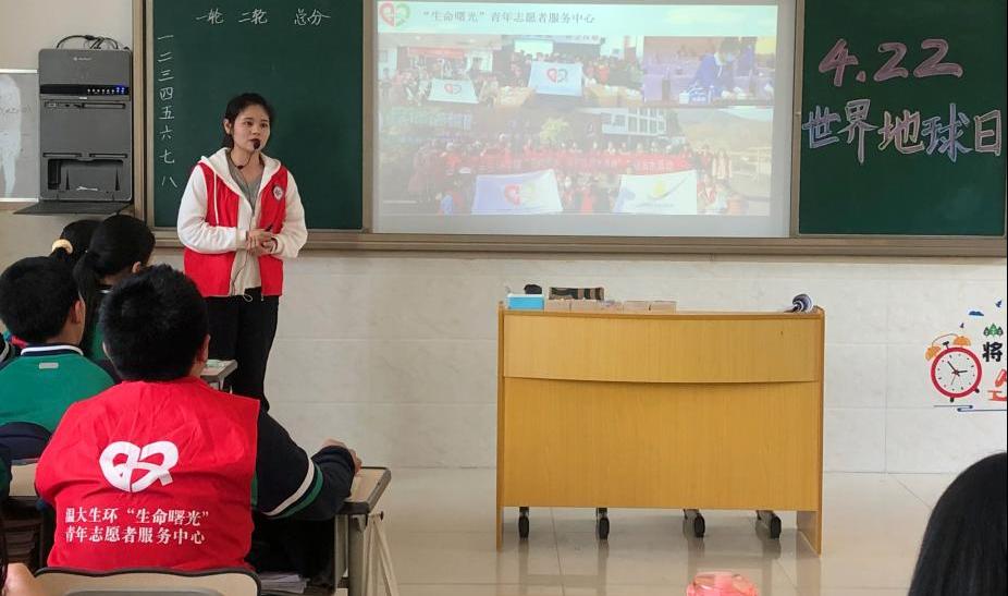 “老师,我们也想做志愿者”,布置现场的“红马甲”被中学生们热情围绕。为激发共青团员保护生态环境、关注地球健康的意识,4月20日下午,香蕉视频 “生命曙光”青年志愿者服务中心来到香蕉视频 附属茶山实验中学七(1)班开展了“修复我们的地球·关注地球健康”的世界地球日主题班会。