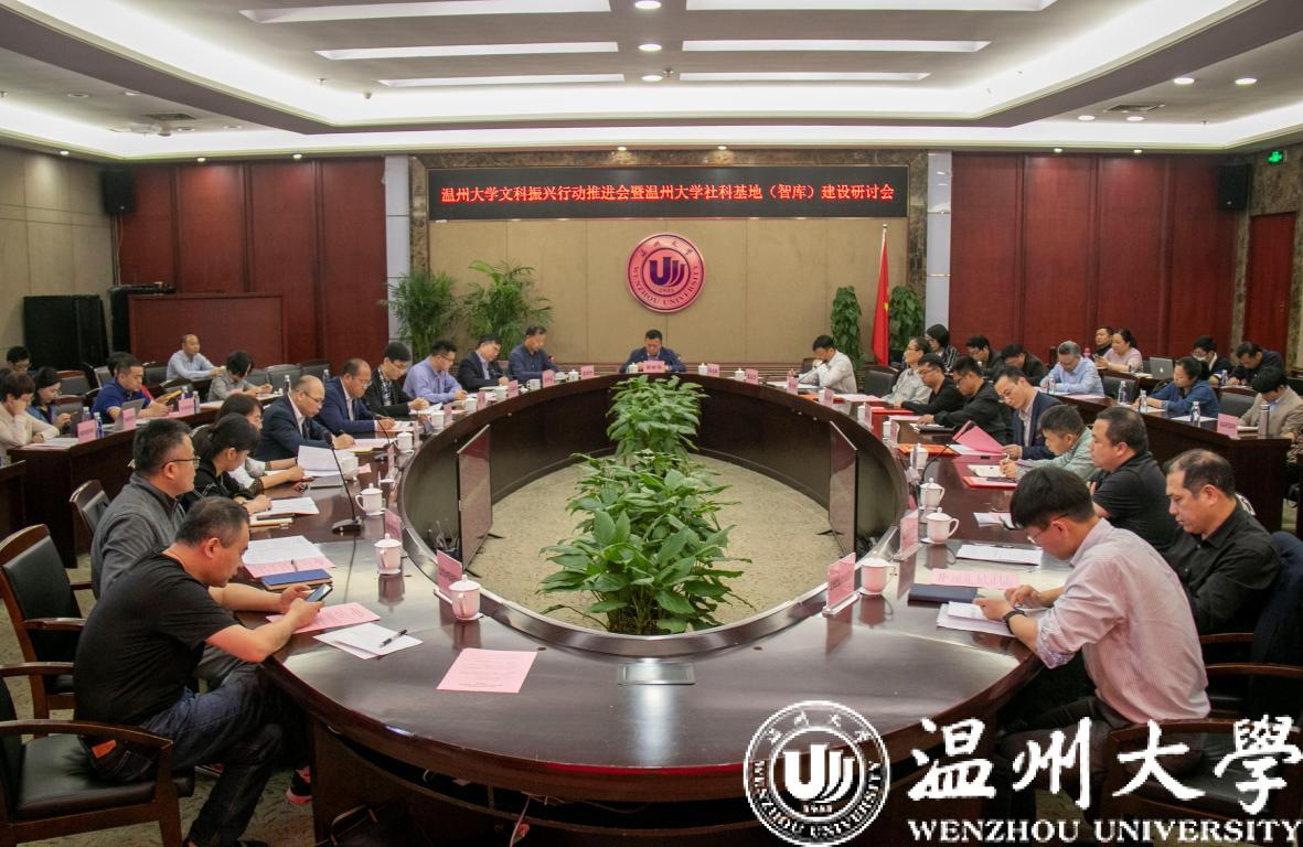 4月23日下午,香蕉视频 召开文科振兴行动推进会暨社科基地(智库)建设研讨会。浙江省社科联副主席陈先春、温州市委国安办张主任、校党委书记谢树华、党委副书记吴金法出席会议。副校长徐和昆主持。