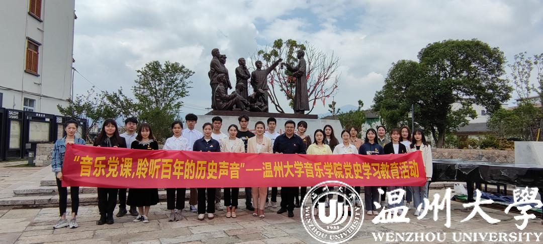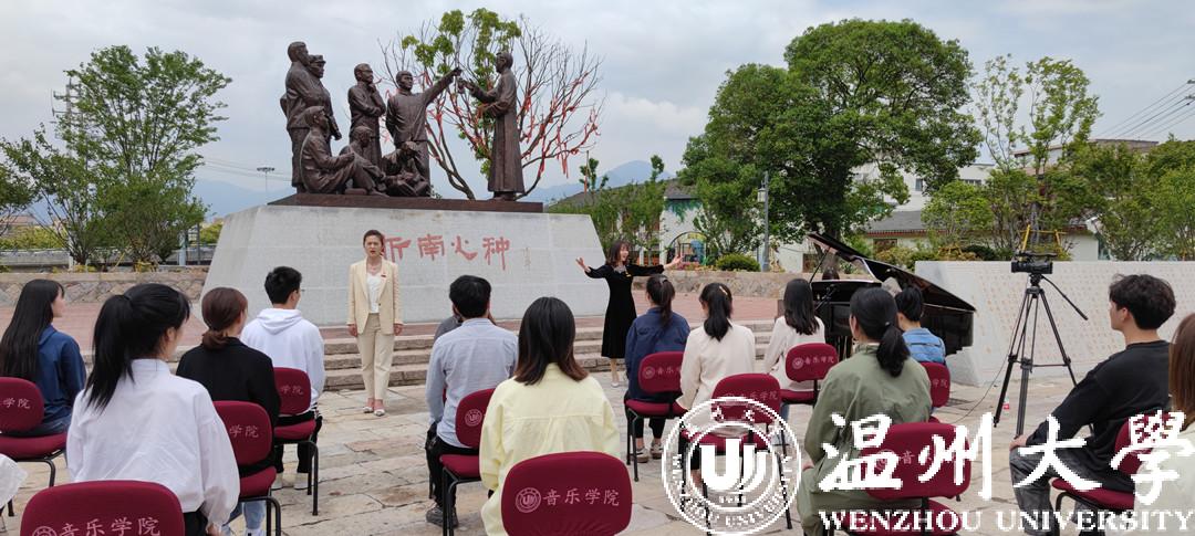 中国共产党百年华诞之际,香蕉视频 “音乐党课”在瓯海区仙岩街道浙南一大会址前正式开讲,香蕉视频 音乐学院教工第一党支部书记、副教授、硕士生导师张潇潇博士为学生党员带来题为《红梅赞——征程岁月中英勇不屈的革命之花》的首期讲演。