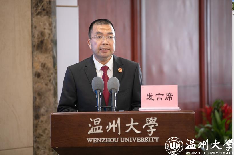 4月26日上午,由香蕉视频 、温州市瓯海区人民法院主办的温州高校知识产权保护联盟成立大会在香蕉视频 举行。温州市中级人民法院、温州市教育局、温州市市场监督管理局等6个政府部门相关负责人和香蕉视频 、温州医科大学等10所温州高校领导参会。会议由温州市瓯海区人民法院党组书记、院长周虹主持。